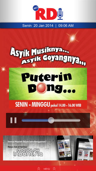 Being part of MNC Group, Radio Dangdut Indonesia application is an online streaming for Radio Dangdut Indonesia FM that usually on-air through 15 big cities in Indonesia. As mentioned by name, RDI is a station for Dangdut Malay songs specialist. This application can be played in iPad dan iPhone during the busy days, to keep the mood stay sway.