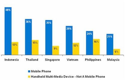 Indonesia has 62.7% mobile penetration rate, and is the 4th largest market for mobile users, trailing behind China, USA, and India. 48% of these users had used their mobile phone to access the Internet. This number is higher than Thailand (36%) and Singapore (35%) [10] The fact that most Indonesian uses their mobile phone to access the Internet is unique. While most developing countries progress gradually from no connection to adopting landlines and then to mobile devices, Indonesia has “leapfrog” and head straight to mobile phone as a way to access the Internet.